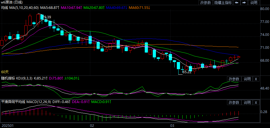 礼拜五(3月21日)亚盘时段,美原油价值目前交投于68.5美元/桶邻近。据信息,周四美邦通告与伊朗闭连新的制裁步骤,加上中东地缘场合愈发重要,以及OPEC+揭橥了一项新摆布,哀求七个成员邦进一步减少石油产量,盖过了美元强势影响,邦际原油价值保持反弹回升态势。
