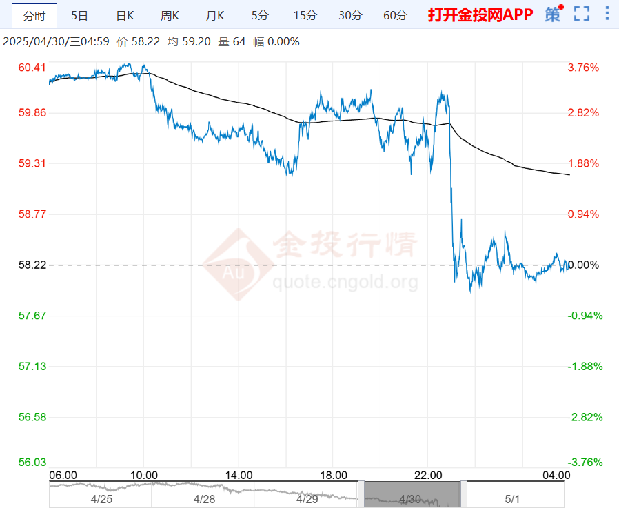 礼拜三(4月30日)亚盘时段,美原油价值目前交投于60.4美元/桶相近。美邦闭税策略攻击环球经济,这对石油需求酿成显着的负面影响,以及接下来投资者忧虑OPEC+将降低产量,昨日邦际原油价值大幅下跌,盘中触及两周最低。