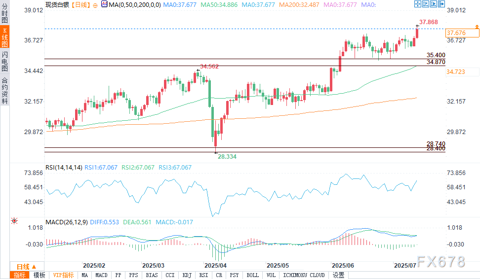 白银的飙升得益于工夫面冲破、营业战避险资金流入和美联储宽松预期的联合撑持,短期内墟市方向看涨。