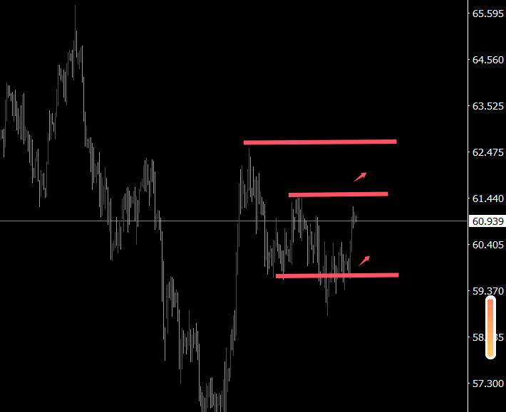 原油周二颤动上行,当天最低59.6,最高61.2,日线,日线看油价又有上涨的势头,上方眷注62和63,四小时线,颤动上行,小时线,颤动上行,但短线有回调的势头,下方眷注60和59,日内操作思绪以颤动上行径主