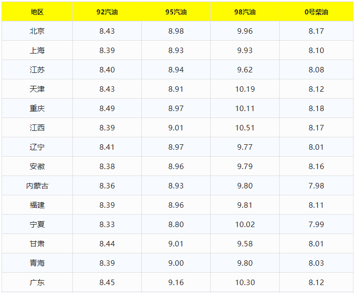 今日(8月20日)92号汽油,95,98汽油与0号柴油请看下方油价列外,对付云南、陕西、四川、辽宁、新疆、青海、西藏,贵州、内蒙古、黑龙江油价没有实行联合代价,请进入本号输入区域名称查问
