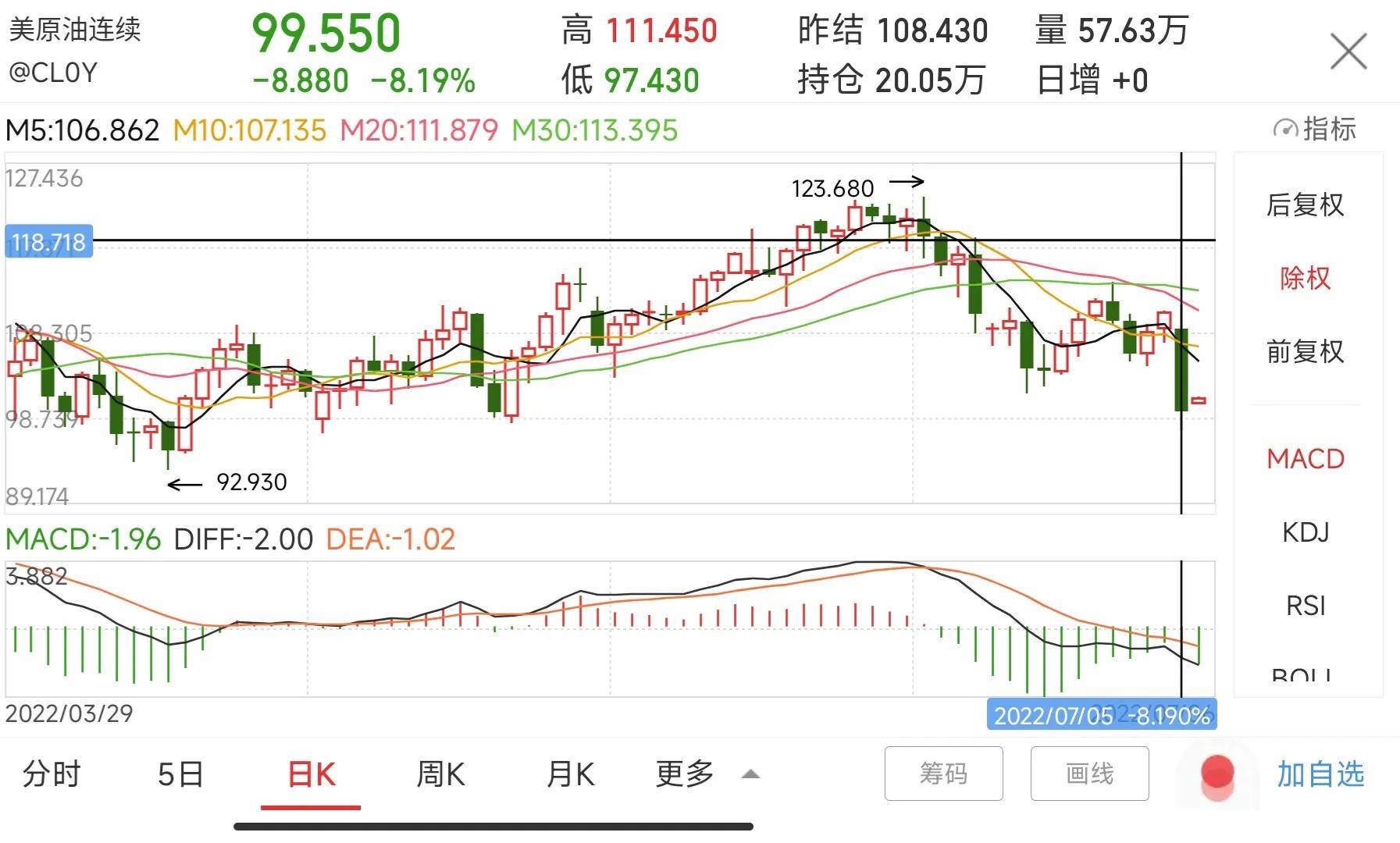 7月5日,邦际原油代价迎来“史诗级”大跌,WTI原油期货代价一天跌了8.19%,并跌破了100美元大合,要大白WTI原油期货代价前次不到100美元依旧正在近两个月前。