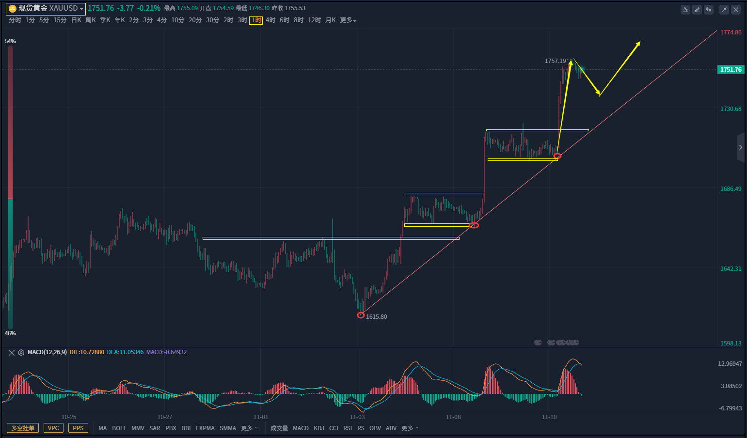 从图中黄金1小时周期图来看,黄金代价正在前期汗青大撑持1617相近先河了大反弹,并修建了一个圭表大级别头肩底样子,确立了该级其它众头趋向行情,目前行情延续众头上涨趋向稳定,节拍上众头走势透露圭表主升浪拉升,调剂浪箱体摒挡样子后连接冲破拉升节拍。从k线力度看 众头力度极端强势且继续性极端强势,单边上行,后市连接延续上涨趋向稳定,直到1小时级别浮现顶部样子再看转势操作。团结MACD目标来看,疾慢线轴上方运转,外白众头主导行情。政策上投资者顺势低吸做众为主思绪。