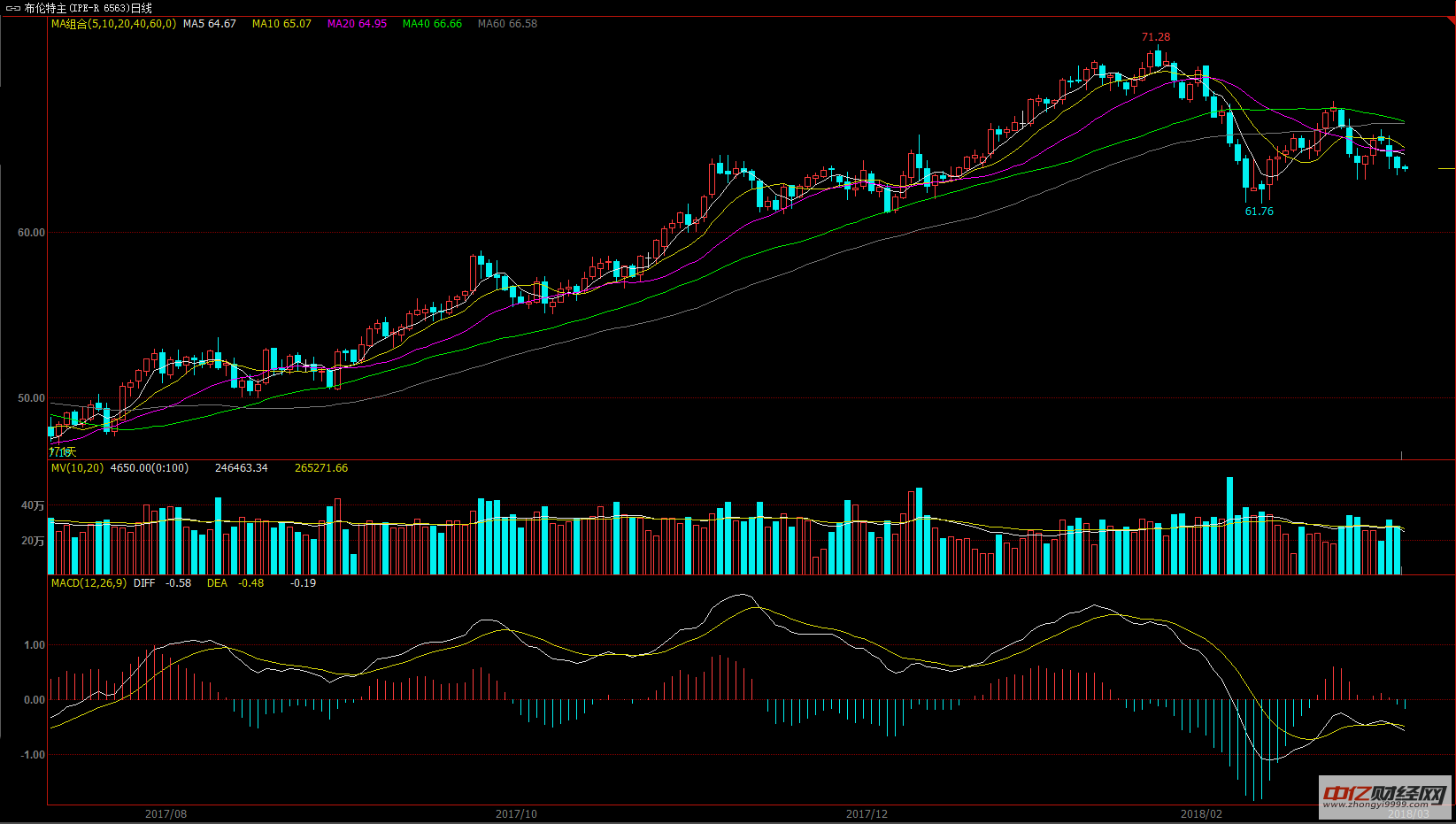 布伦特原油主力日线.布伦特原油:日线图上,布伦特原油主力近期同样庇护高位区间惊动清理走势。上个营业日布油主力收出一根下影线相对较长的阴线,收盘价站于均线下方;均线外,其余均线呈空头罗列走势,短期商场看空心思较浓,永久看商场仍有维持;成交量上看,近几个营业日内商场扔盘压力较大打压油价;DIFF、DEA正在0轴下方死叉向下,绿色动能柱小幅扩张;归纳来看,短期布油主力同步下跌概率较大,但后市仍有肯定维持,下方维持位61.76美元/桶相近。