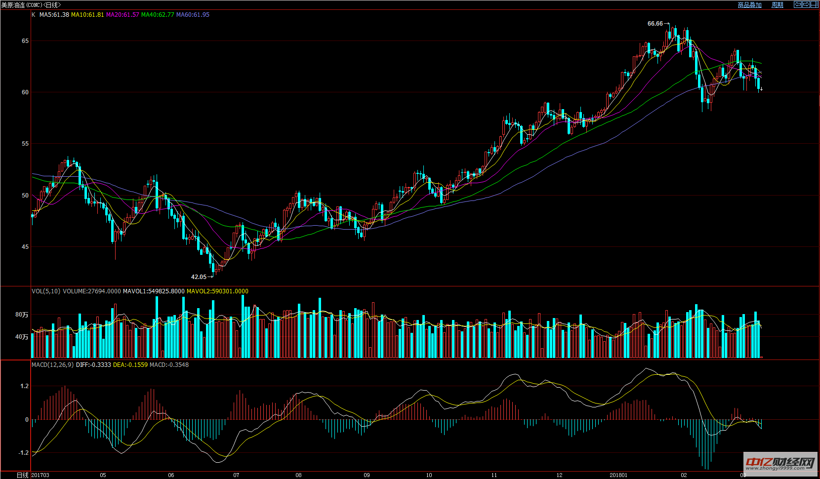 美原油主力日线.美原油:日线图上,美原油主力近期全部庇护高位区间惊动走势,永久来看盘面仍处于上升行情。上个营业日美原油主力收出一根阴线,收盘价站于全数均线入手下手拐头向上,永久来看商场仍有维持;成交量上看,商场近期扔盘压力较大,成交周围小幅上升;DIFF、DEA两线轴相近死叉向下,绿色动能柱小幅扩张;归纳来看,短期美原油主力持续走跌概率较大,下方维持位58.16美元/桶相近。