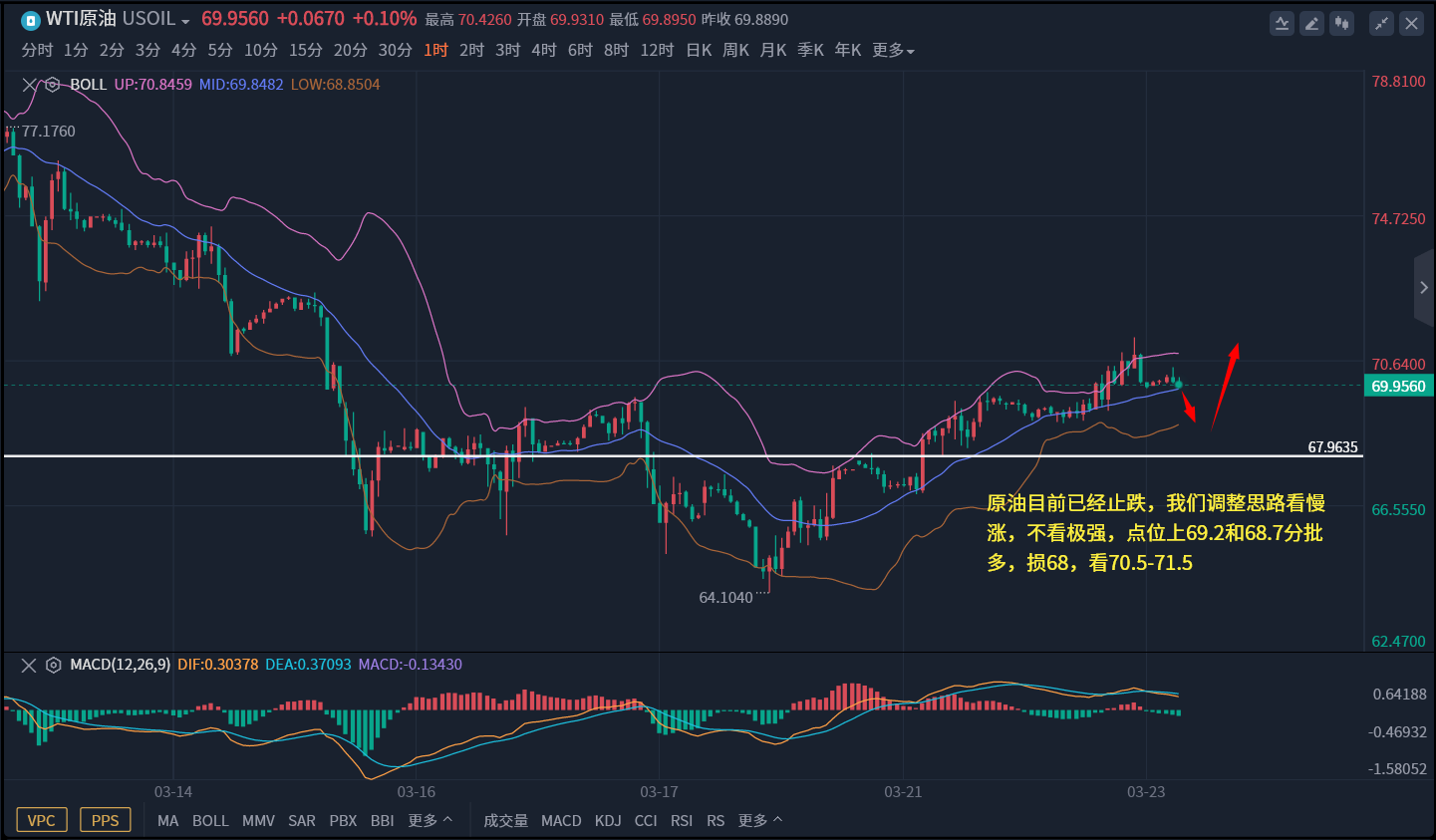 原油昨天满堂走势慢涨,半途正在70.2固然有回落,但力度不大,咱们给出的69.4和69.9空单也只是小利,并没有联思中映现的大跌,而日线的上午夜的油价大涨,仍然粉碎了之前的大跌形状,目前咱们要做的即是回落众,只是上方主意也不宜看远,结果周线相近,而这里也是周线压力,也是日线中轨场所,能否迈过去将是众头的一道苛重检验,假使上破强势看涨,不破如故回落。只是目前仍然止跌,咱们调治思绪看慢涨,不看极强,点位上69.2和68.7分批众,损68,看70.5-71.5!作品只可给你暂时的宗旨和思绪,至于实在进场的点位和止盈机缘,增加挚友获取。目前手上有低位空单和高位众单不分明何如执掌或者近期映现重要损失可增加李呈金诱导V【sf731658】寻求助助,我会抽空予以我粉丝最大的助助。