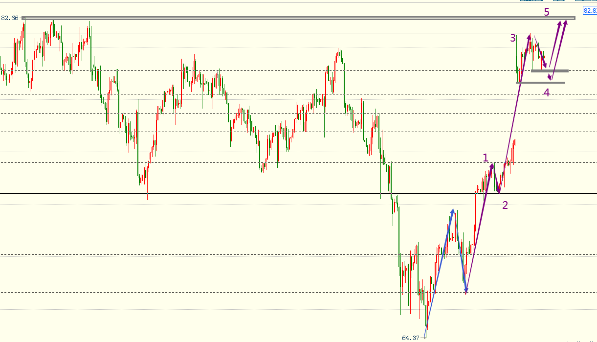 2、依据图灵海浪往还编制的更新,原油意睹就以82.64行为中期众空节点,上破则前期下跌安排整个结果,进入大B浪反弹阶段;要是不断承压则先看阶段性的回补缺口举措。
