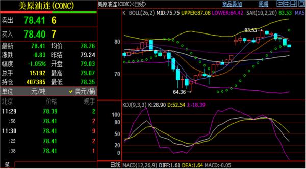 原油价格走势图刘铭诚预测亚欧盘油价还会下跌本周众次正在全网给出原油高位空单,也不了解看到铭诚思绪的诤友跟上了没?周二盘面上依然显示顶部信号,那便是确定了主体基调,任何的反弹都可能插足空单,我也正在微圈里两次给出原油81.2空单,目前抵达78.3一线,小波段连接持有!行情依然确认弱势,反弹便是做空时机。原油两连阳下跌破位日线,SAR扔物线转向目标延续向下发达,日K线长上影实体阴线控盘希望延续下行。
