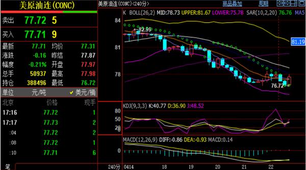 4小时图形中,布林带上下轨区间收口,上轨阻力位于80.1.中轨承压78.3.下轨目标线一线小时SAR掷物线目标延续低位向上发达,之字转向目标同步给出底部信号,维系日线枢纽支柱节点,亚欧盘希望触及支柱位后起头反弹上涨。附图目标上MACD疾慢线底部结金叉,赤色动能柱渐渐放量,KDJ随机目标靠近高位,RSI强弱目标抵达数值80地方,有转下行危机。综上所述,原油亚欧盘偏空控盘,守候触底后反弹显现。今日下方闭怀76.7-76.2-75.2支柱,上方闭怀78.3-79.8-80.5阻力,操作上刘铭诚提倡回踩做众为主,高空为辅。
