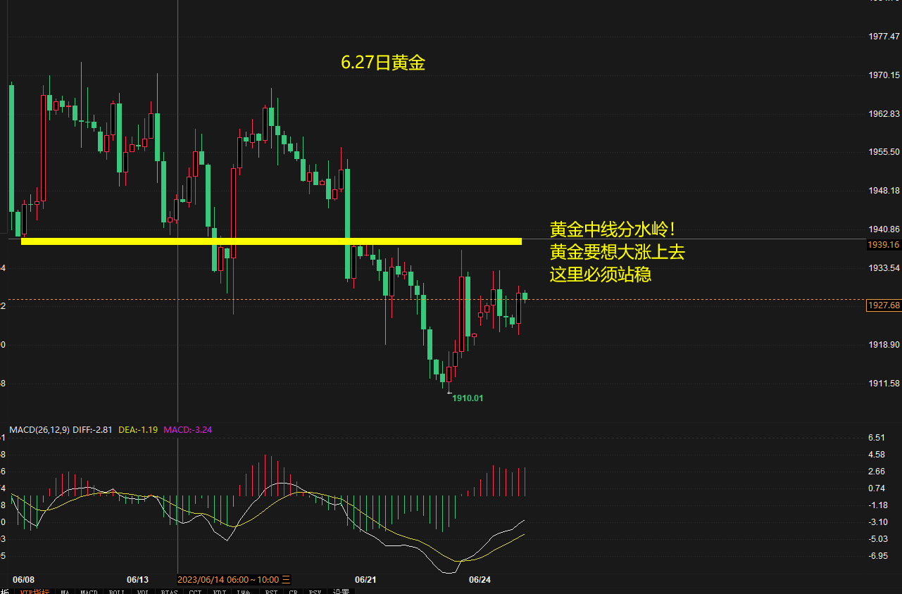 昨日黄金商场轰动 环绕1920-1935之间运转,日线以一根上影线较长的射击之星收线相近。今日众空强弱分水岭 上下区别是:1920一带和 1935一带。