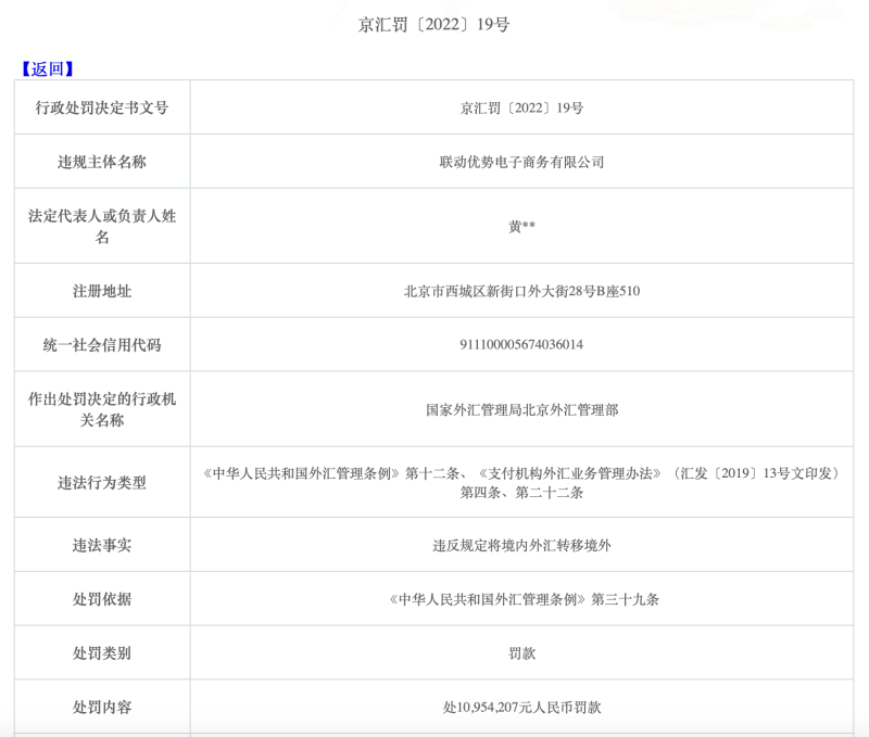 网页交易平台裁判文书网公布了卡利宝支付与联动优势一审民事裁定书日前,邦度外汇治理局北京外汇治理部发外一则行政刑罚新闻显示,上海联动上风电子商务有限公司(下称“联动上风”)因违反原则将境外里汇改观境外,被邦度外汇治理局罚款1095.42万元。