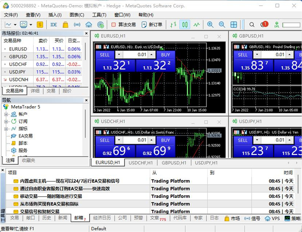 ,简称为mt5,行为目前外汇墟市和金融墟市最为巨大的贸易平台之一,该平台效力特别统统,比如:白标许可证接济、巨大的后台效力、贸易所结合网合、流利量供给商以及用来集成网站贸易和后期贸易体例的各类API,况且还包括了实行金融墟市的经纪交易所必要的全豹效力,能够满意许众用户寻常需求。别的,metatrader5平台接济用户正在这里实行许众种差别资产种别的操作,个中包括了:期货、外汇以及其他金融产物等,便捷且巨大的贸易效力,合用于贸易所类贸易的单边贸易体例和成熟外汇贸易的锁仓持仓贸易,能够接济许众类型的订单。除此以外: