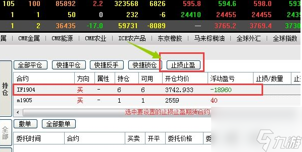 1登录博易专家营业软件,选取需求止损止盈的仓位,然后点击“止损止盈”按钮