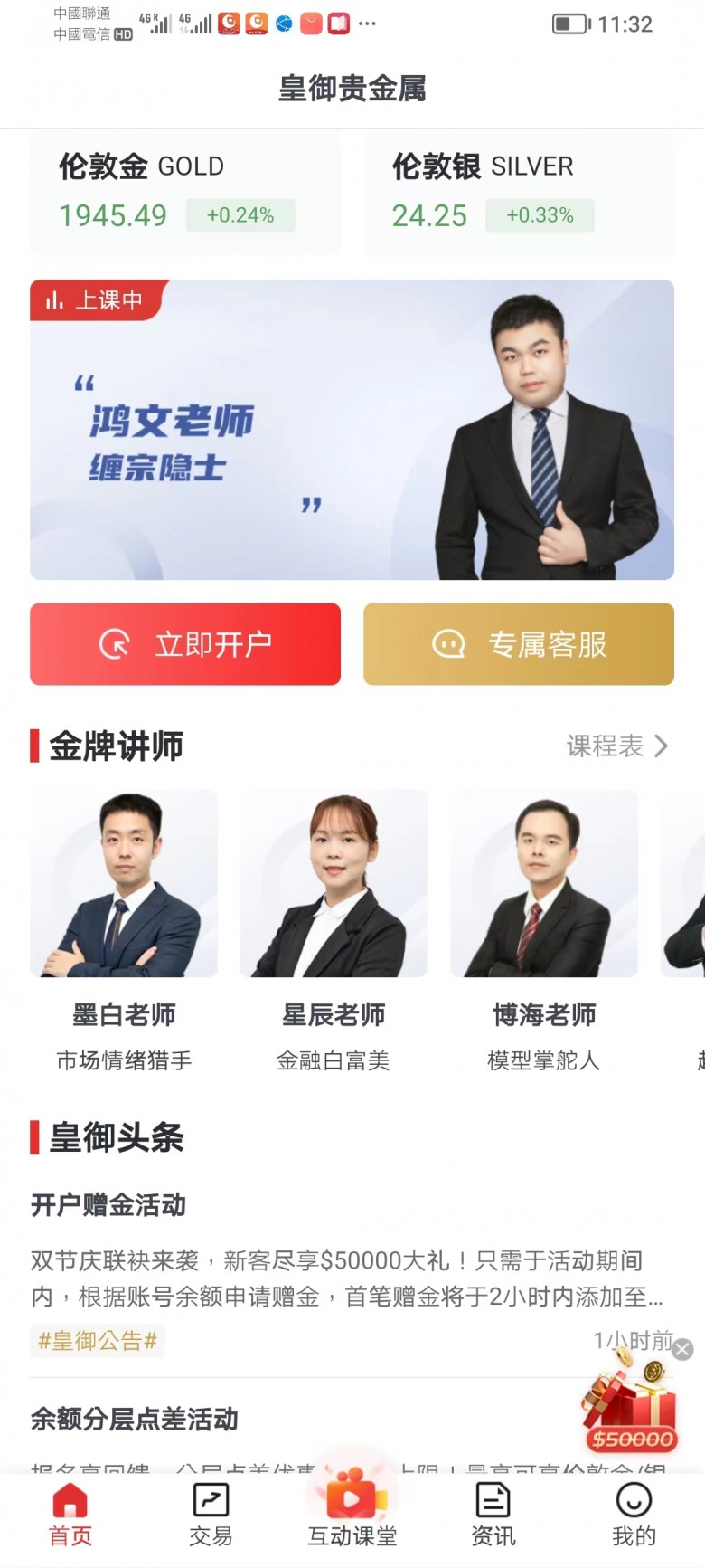 特质: 该炒黄金软件供应逐日黄金来往资讯、及时贵金属行情及直播教室效力。直播教室效力较为新奇,但并非往往都有直播。