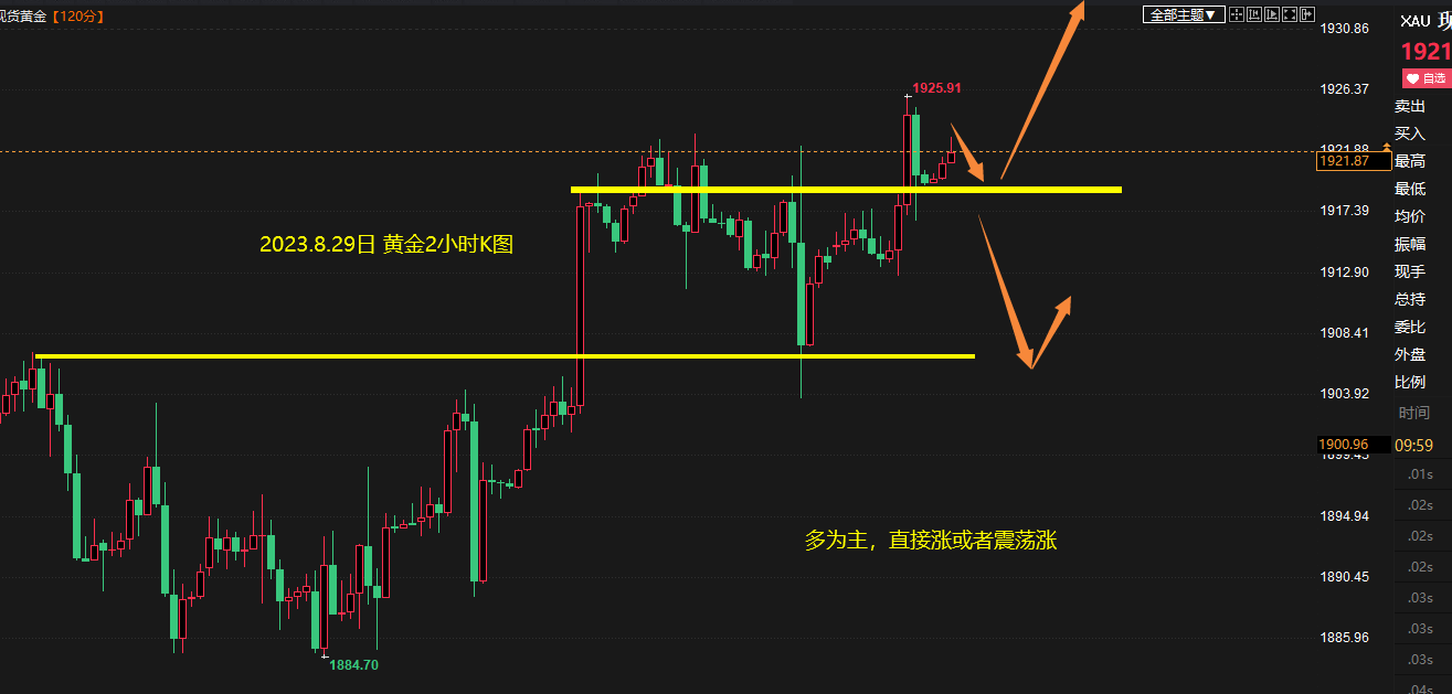 今日操作须要先巡视,行情环绕1917一带相近 以上运转的话,那么黄金众头还黑白常强势的,那么上方看1930-1936最远1945