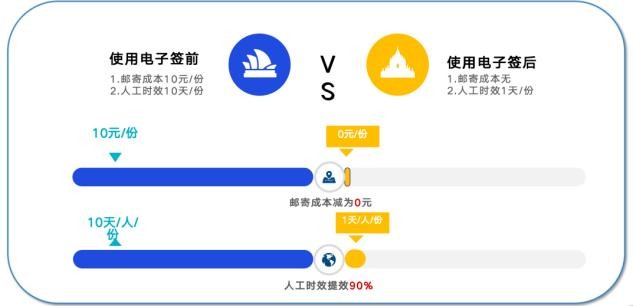 该公司一年签约量10万;行使电子签后,邮寄本钱一年节俭100万;人工提效90%。