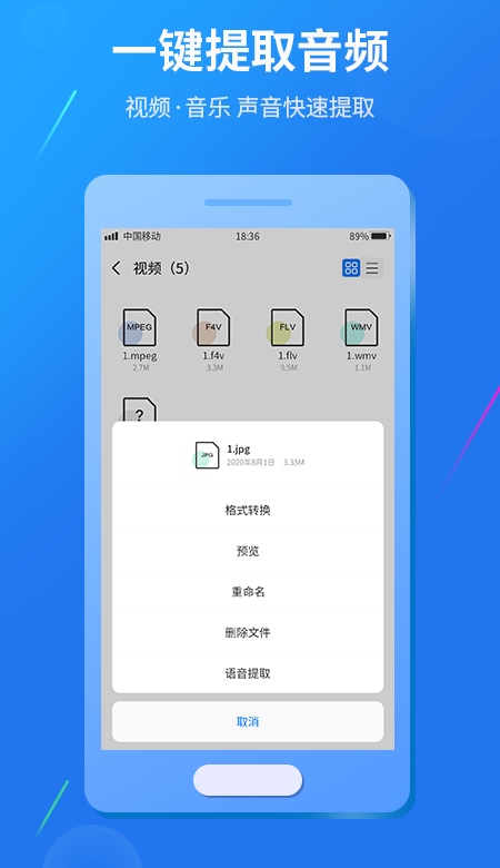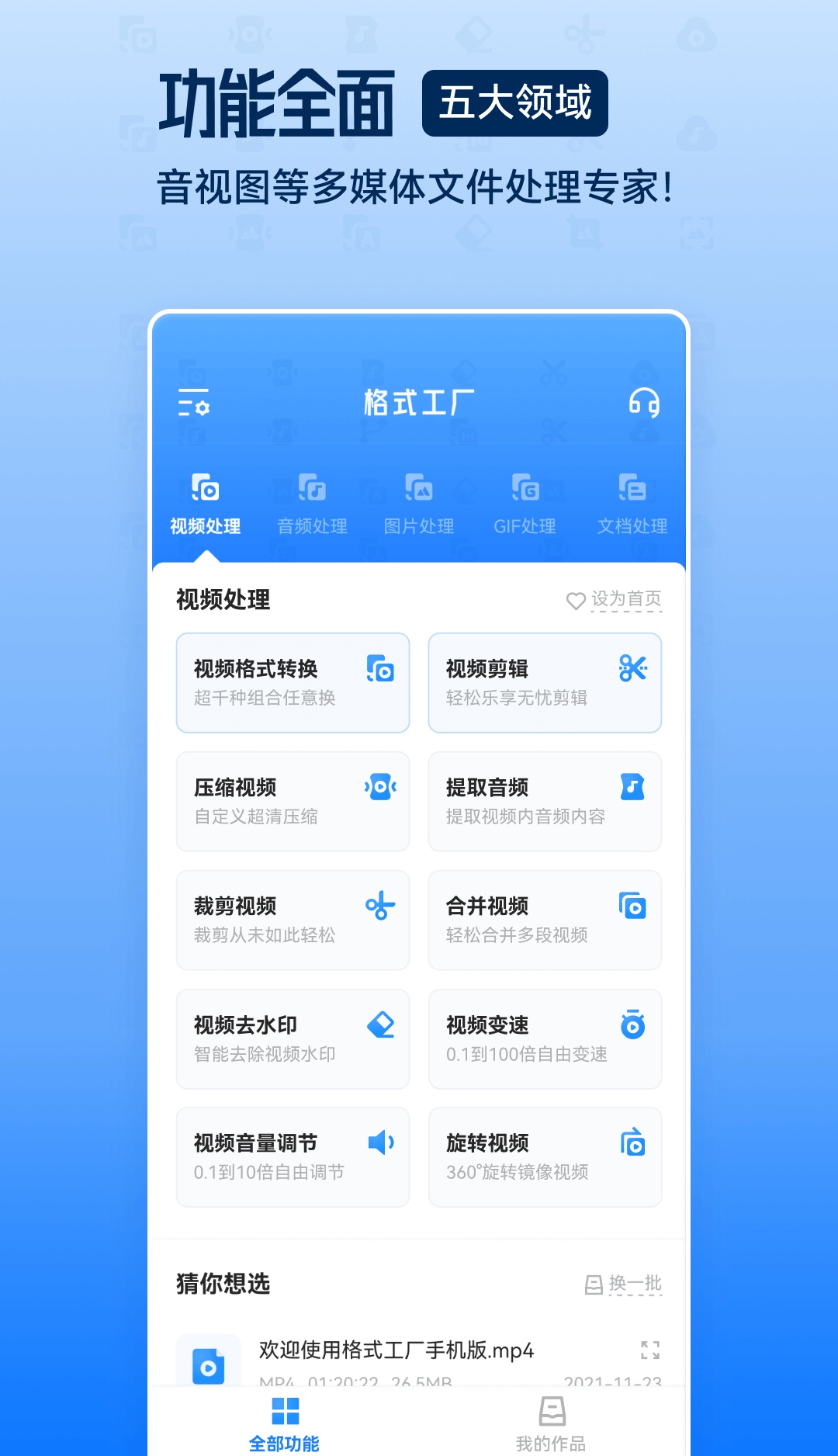 万能的视频样子转换神器,能够将视频的样子转换成mp4、gif、mp3、mkv、mov等等,还能够播放各类样子的视频,音乐、音频和文档的样子转换也是救援的。