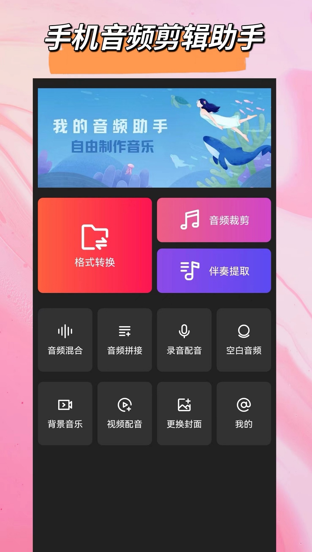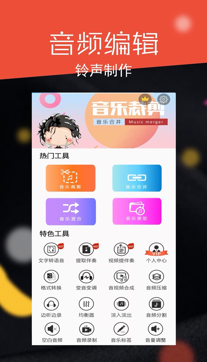 是公共音频剪辑和转换的帮帮,各类主流音频样子都能够互相转化,还能够对本身手机的铃声举办编辑,云云其他平台的视频当中提取音频也是所有能够的。