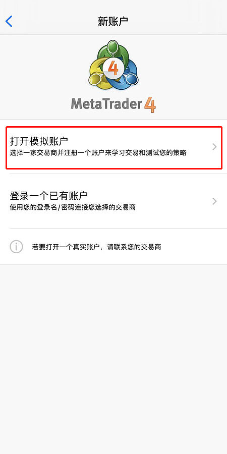交易形式分直接交易和挂单交易—mt4软件下载交易近年来,跟着经济水准的提拔,消费观点的改造,越来越众人下手珍爱投资理财,外汇贸易依赖着公允、公允、商场透后、时机均等的这些特质获取更众投资者青睐。创议刚初学的外汇新手,必定是需求先申请模仿账号来实行贸易研习,由于模仿账号是不需求花真金白银的。此前的著作曾经精细地讲明了PC端MT4模仿账号申请流程及操纵证实,当前就接着讲讲手机版MT4模仿账号申请流程及操纵证实,容易诸君外汇新手研习参考。