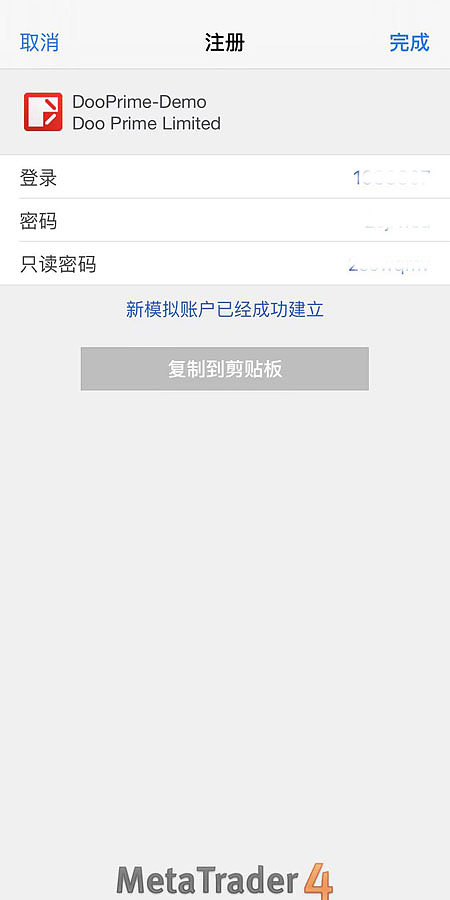 以上便是手机版MT4模仿账号申请流程及操纵证实的齐备实质,合于MT4模仿账号的简略相识和利用就到这里,起初是要找到正版MT4软件,创议外汇新手可能去Doo Prime德璞血本官网下载正版MT4软件,然后开设模仿账户,一贯熟练操作,等齐全弄清爽贸易流程的时辰,再去开设实正在账户。