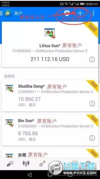 4、假若仍然有一个账户了那就点击第二张图中的“+”,就能够接连增加账户了,一个MT4软件能够同时登录许众个业务账户额。