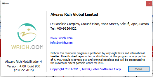 下载结束后,咱们可能正在软件的协理新闻内中的“合于”内中能显示出书本号ICO图标以及MT4署名才是正版。如下图