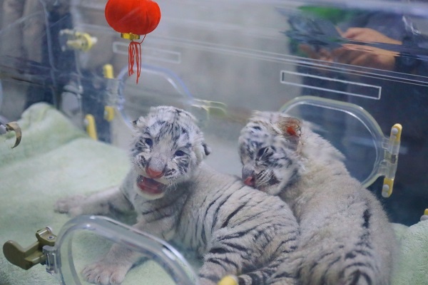 截至目前,两只白虎小崽体重已增至寻常水准,据悉,为保证两只白虎宝宝康健滋长,保育团队将24小时照拂养育。