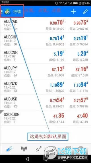 2、软件进去之后,这是最初的默认页面。小心左上角的行情了没,点哪里就能够登录来往账户了。