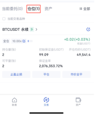 5.开仓后可正在【仓位】栏下,查看订单音讯,可筑设止盈止损或举行平仓操作。