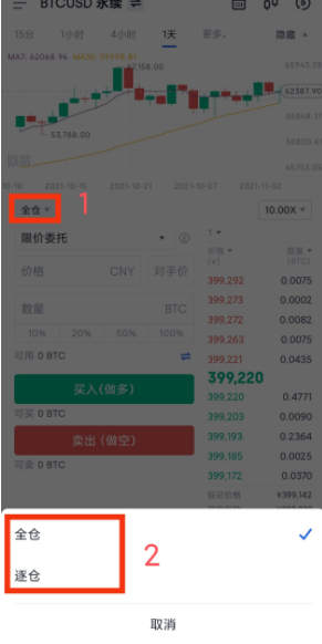 满仓开,则您的仓位量为10个EOS,那开仓手续费收取0.002-0.005个EOS,