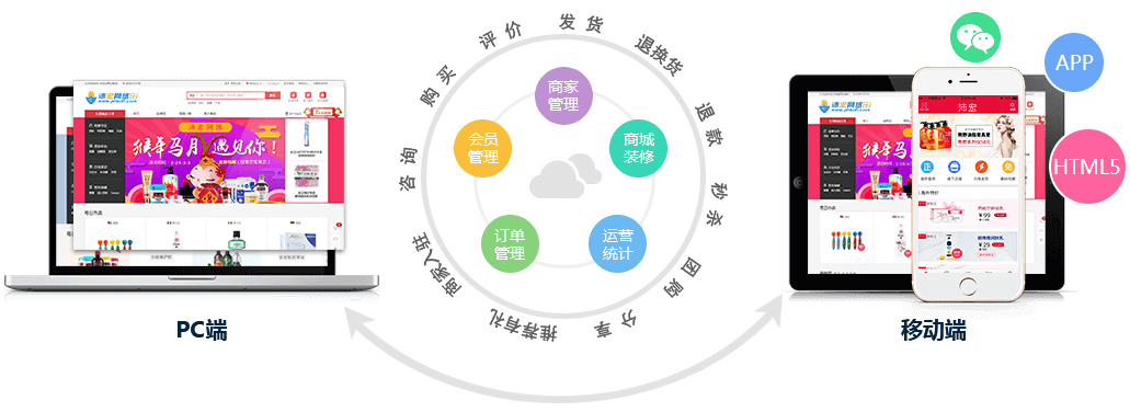 商派B2B2C众用户商城平台计划是支柱众用户形式的平台级电子商务运营经管与出卖任事体系。通过对平台生态链的任事和经管,打通上下逛供应链编制,基于主旨营业+筑树周边营业的形式,同时供应金融、物流仓储等任事,对原有营业实行贸易升级。