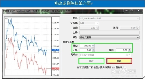 2.若你要编削挂单实质, 请正在价位/止损/收获框内输入价钱,然后点击编削(绿框)