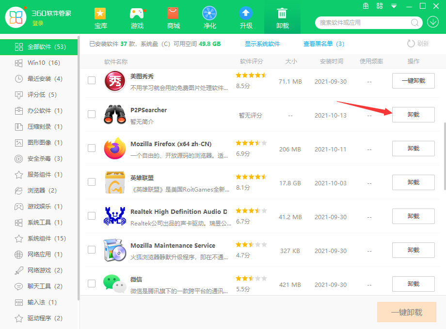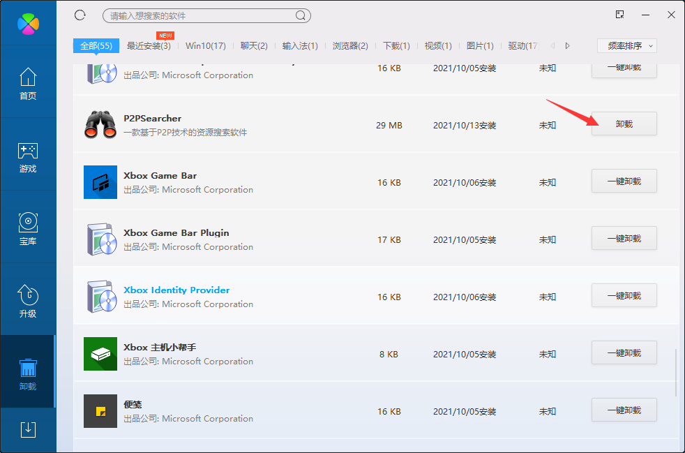 办法三:安设并翻开360软件管家,正在卸载选项的列外中找到p2psearcher软件,点击卸载即可