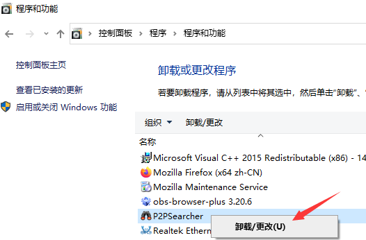 办法一:翻开电脑限造面板步伐步伐和功用,正在步伐和功用面板中找到p2psearcher软件,右键点击卸载即可
