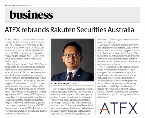 正在过去的几年里,ATFX正在环球商场上显示卓绝,取得了各大的巨子媒体的体贴。本年,咱们还同意CNBC阿拉伯电视台(CNBC Arabia)《金钱解码》(Money Code)全新的财经节目,为环球观众涌现最前沿的金融消息和专业的商场领悟。公司信息还正在环球出名的《日本时报》经济及贸易版面澳大利亚和日本商业协作的要紧金融信息版块被报道。