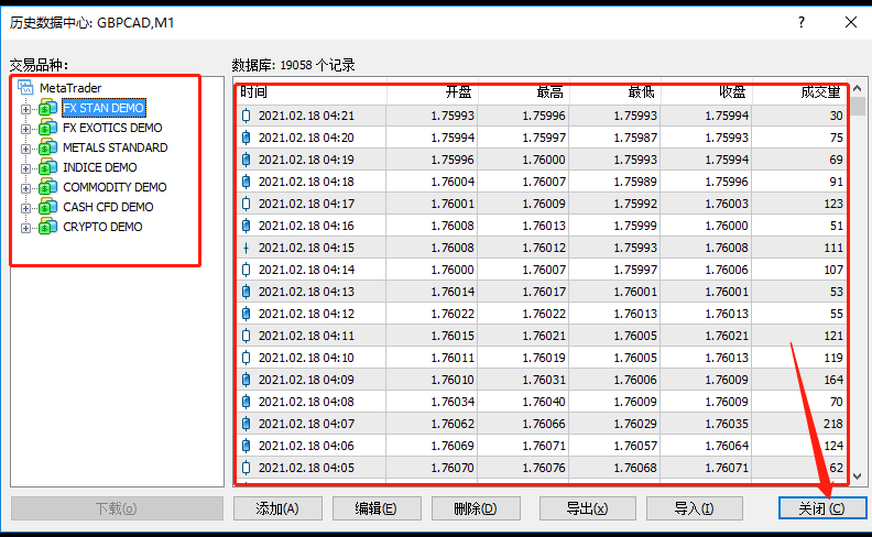 第二步,之后大众就看到Mt4上面扫数种类的数据,然后大众就能够选拔直接念要查看的种类,点击韶华段,大众就能够看到这个种类的所少有据,看完之后点击紧闭就能够了。