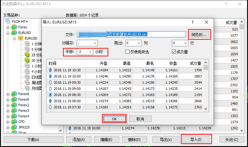 点击导入按钮,正在弹出的窗口里点击浏览,选取一经下载好的相应的史书数据(式子为.csv),依据数据从来的时差计划一下应当平移众年少时,最终点击OK即可。