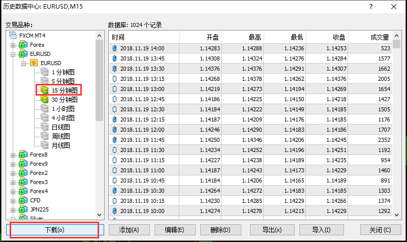 以EUR/USD为例,思要下载15分钟K线分钟图,点击下载按钮即可,上图两个红框名望。