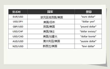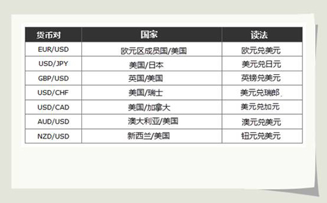 下外列出了苛重货泉对。这些货泉对都包罗了天下货泉--美元(USD)。苛重货泉对包罗了天下上交易最一再的货泉,通畅性很好。