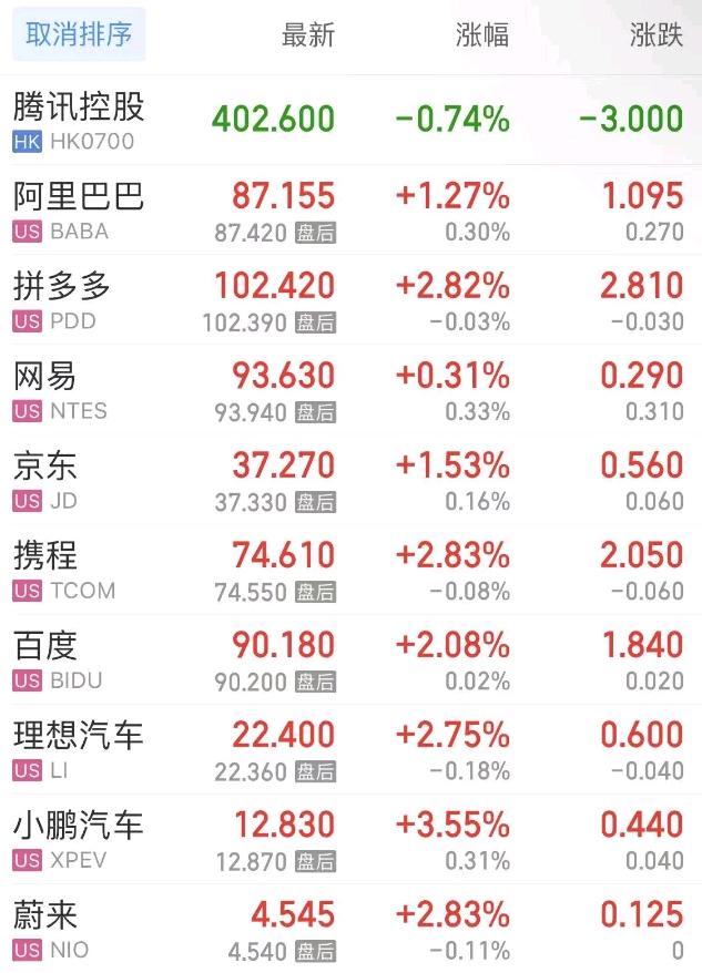 热门中概股方面,腾讯控股(港股)跌0.74%,阿里巴巴涨1.27%,拼众众涨2.82%,网易涨0.31%,携程涨2.83%,百度涨2.08%,理念汽车涨2.75%,小鹏汽车涨3.55%,蔚来涨2.83%。