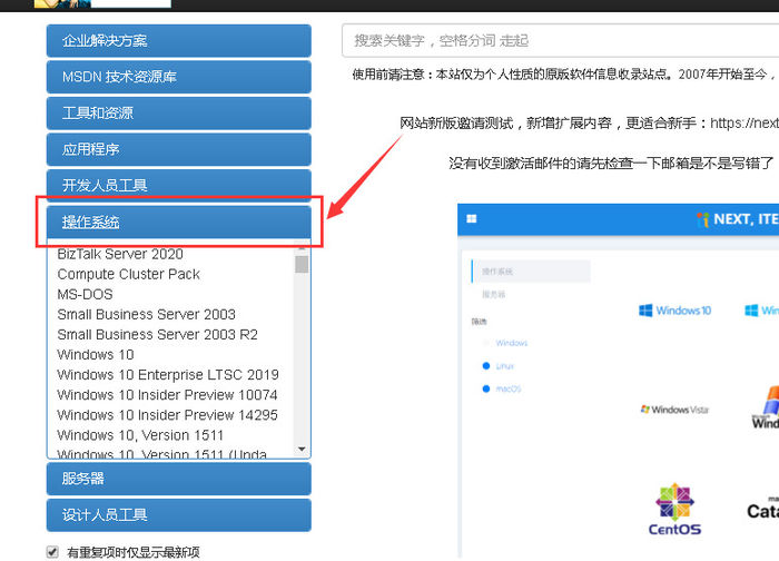 3、也能够正在网页左侧的导航栏中找到操作编制一栏,点击就能够看到区别版本的编制。