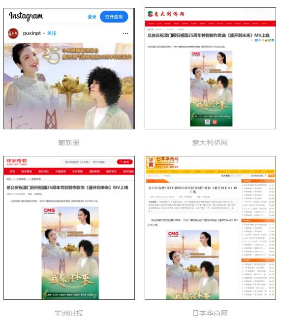 《怒放到来日》MV接连正在海外里激发热闹应声。葡新报、意大利侨网、非洲时报、日本华商网等海外汉文媒体渊博转载报道。