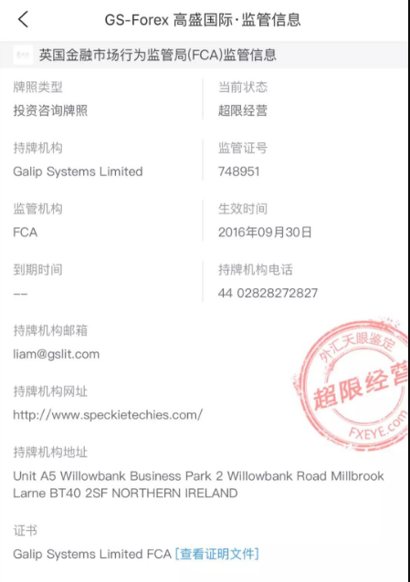 经盘问,GS-Forex高盛邦际持有的英邦(FCA)拘押执照为投资商讨类执照,其执照天性没有从事外汇经纪营业的权限,属于超规模规划,存正在远大危机。