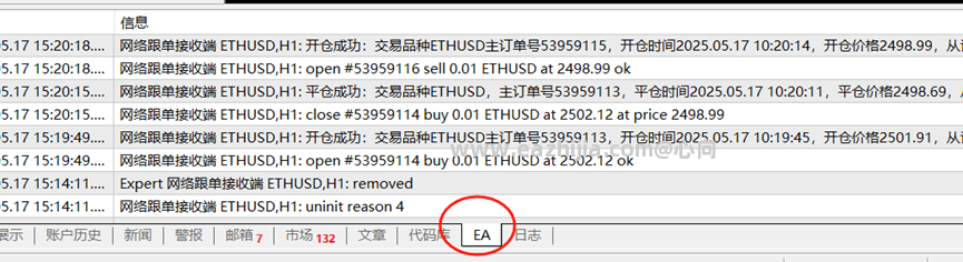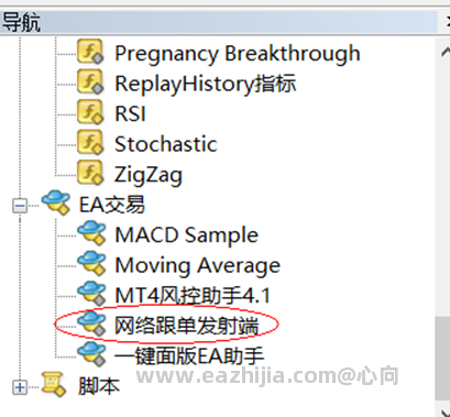 (2)点击导航栏EA贸易右键改善,列外中就会展示“搜集跟单发射端EA”。
