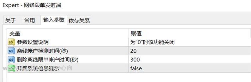 默认 20 秒,若胜过该韶华未收到跟单帐户正在线心跳信号,法式界面上就会显示离数帐户;删除离线秒,若胜过该韶华未收到跟单帐户的心跳信号,体系就会删除该离线帐户,且不正在向该帐户发送贸易指令。