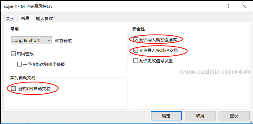 直接将“搜集跟单发射端EA”点击拖到图外中,或者点击鼠标右键把EA法式附加到如今运转的图外中,倘若需求修削法式参数,双击乐貌图标就能够掀开参数举行成立。勾上如图所示的复选框,点击确定即结束法式加载装置: