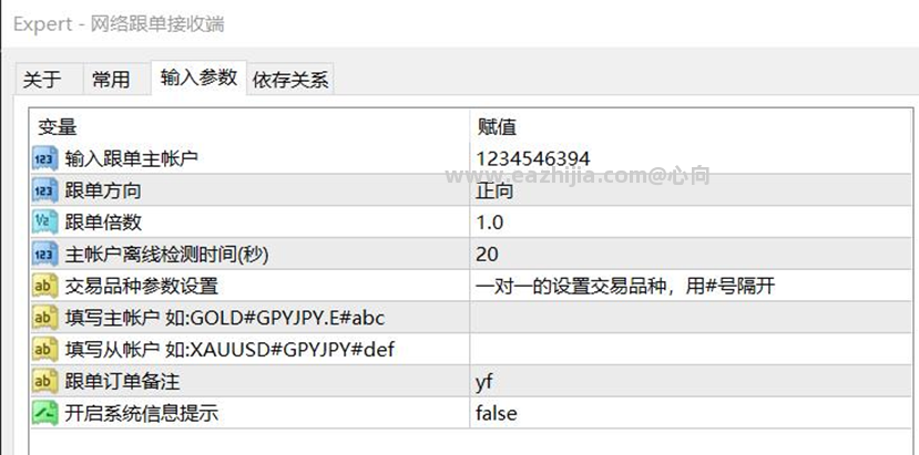 搜集跟单法式是初志是因小我需求开拓自用的,现分享出来。本EA软件不撑持下单间隔低于1秒的高频贸易跟单操作,跟单效劳与电脑和搜集速率相合系,不包管百分百跟单胜利,电脑运转怠缓或搜集卡顿都市酿成漏跟单景象。EA软件只是做为贸易东西,也能够配以其他风控东西操纵,操纵该EA软件需自行担任贸易危机。接待下载操纵,提出保贵定睹,跟据用户定睹后续会不间断更新。有题目请微信:yxyunfeng。