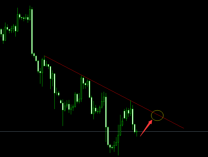 以英镑这张图为例,插足看空,我画了一条低重的趋向线,那么本辅助可能锁定这条趋向线,假如代价打到趋向线上了,就会开空单,这不受韶华与代价改观的影响,只体贴这条趋向线。