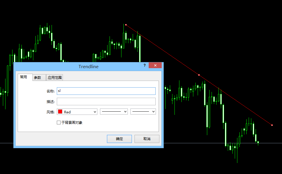 画好的趋向线是这个样的,可是现正在还无法主动下单。双击须要锁定的趋向线,正在上面右键,点击TrenLine属性,将名称改为sl,如下图: