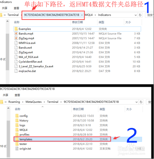 5、点击MQL4前面一串由字母和数字组合的职位,就返回到了MT4数据文献夹的总旅途。再找到“templates”模板文献夹,点击进入,如下图: